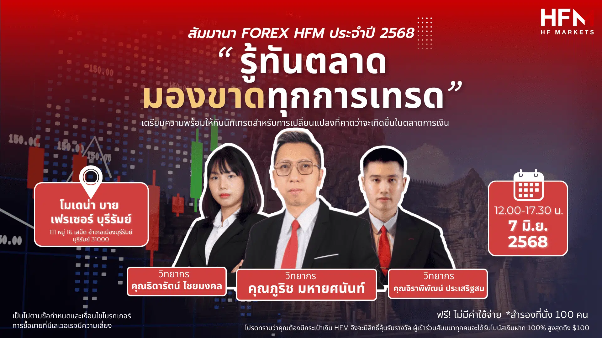 งานสัมมนา Forex สัมมนา HFM ในหัวข้อเรื่อง ‘รู้ทันตลาด มองขาดทุกการเทรด’ ได้รับการออกแบบมาเพื่อเตรียมความพร้อมให้กับนักเทรดสำหรับการเปลี่ยนแปลงที่คาดว่าจะเกิดขึ้นในตลาดการเงิน โปรแกรมที่ครอบคลุมนี้จะมอบเครื่องมือและข้อมูลเชิงลึกที่จำเป็นให้กับผู้เข้าร่วมเพื่อช่วยในการปรับตัว และรับมือกับการเปลี่ยนแปลงในเศรษฐกิจโลก ปัจจัยพื้นฐาน และแนวโน้มการวิเคราะห์ทางเทคนิค โดยการกล่าวถึงภูมิทัศน์ที่เปลี่ยนแปลงของแนวโน้มตลาดในปี 2025 งานสัมมนานี้จะช่วยให้เทรดเดอร์มีความพร้อมในการดำเนินการเชิงรุก ปรับปรุงกลยุทธ์ และวางตำแหน่งตัวเองเพื่อผลลัพธ์ที่ดีที่สุดในสภาพแวดล้อมการซื้อขายที่เปลี่ยนแปลงตลอดเวลา